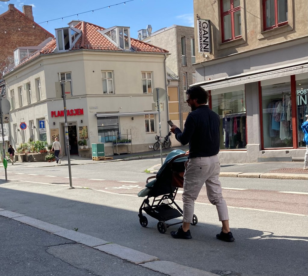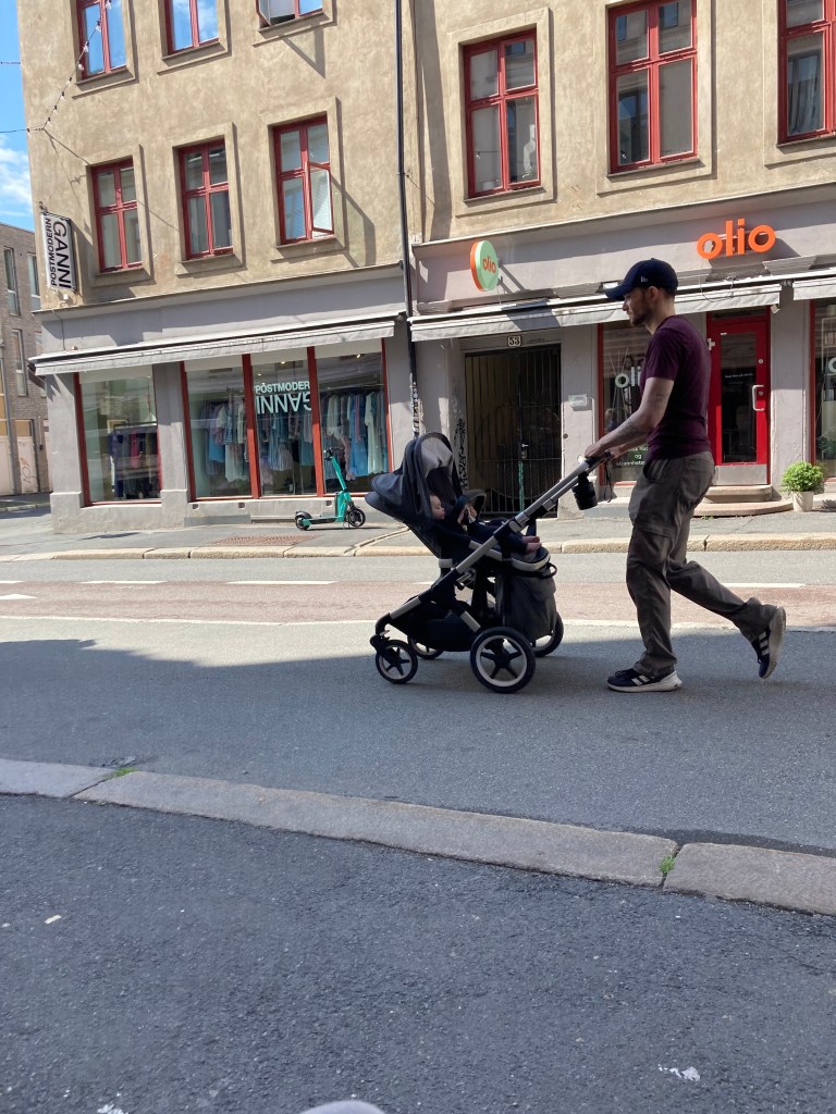 D’ailleurs en arrivant à Oslo, il a eu une idée très bizarre. Il s’est mis à photographier tous les hommes en poussette dans notre quartier de Grunnerlokka. Il souriait et il disait, « regarde Emile ici, ça n’a pas changé, les hommes s’occupent toujours de leurs enfants! « . Ca lui avait manqué. Alors on a passé une après-midi à prendre des photos et il a dit que son prochain projet, c’est de faire une exposition de pères en congé paternité. Je crois que c’est pas terrible comme projet, mais je lui ai pas dit. L’important c’est qu’il m’ait promis une glace après notre promenade autour des poussettes.